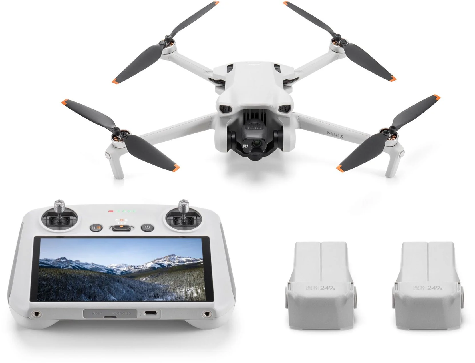 DJI Mini 3 Fly More Combo ir viegls, jaudīgs un kompakts lidojošais drons ar iebūvētu 12 Mpix kameru, līdz 38 minūšu lidojuma laiku un GPS navigāciju.